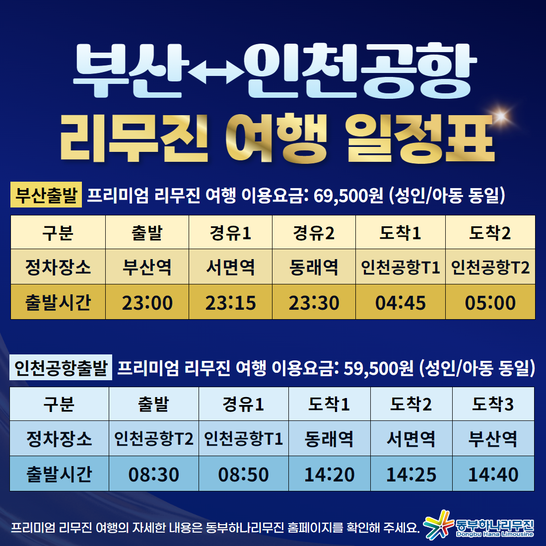부산(부산역·서면·동래) ↔ 인천공항 [프리미엄]
